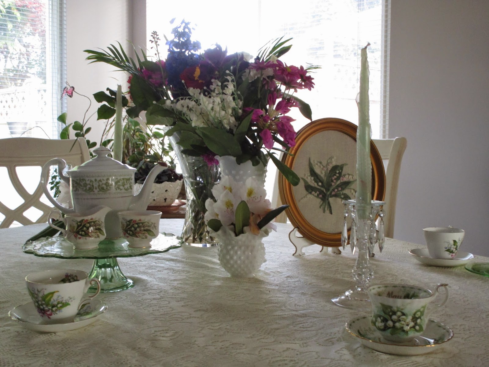 ReplyDeleteI would love to find the May Lily-of-the-Valley teacup as it's my hubby's birthday month and our anniversary. RA makes the loveliest cups. I have a cake stand in pink just like your green one. The needlepoint is very sweet. Thanks for sharing, Karen, and I hope you had a lovely Victoria Day weekend.